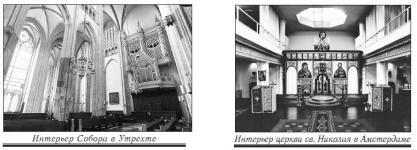 которой мало чем отличался от обычного жилого дома. Протестанты соорудили в храме что-то вроде небольшого купола. Правда, не над всем зданием, а только над алтарем, выходящим во двор, поэтому с улицы его не видно. В верхних этажах, выше купола, живут люди, которые косо – в прямом и в переносном смысле – смотрели на храм и всячески старались его "прижать". Эта ситуация по наследству перешла и к новым хозяевам храма – православным. Например, жильцы требовали, чтобы службы, и даже спевки, не проводились помимо заранее утвержденного расписания. Это отнюдь не "религиозная война", скорее антирелигиозная. Против православного храма выступали вовсе не рьяные протестанты-иконоборцы, а самые обыкновенные голландцы, которым всё, что выходит за пределы обыденности, – хуже горькой редьки. Голландские православные приходы почти всегда в эту обыденность не вписываются, потому что состоят не только из наших эмигрантов, но также из голландцев-"конвертов" (convert – это "новообращённый", а отнюдь не почтовая принадлежность). Энергия в таких людях, особенно в первые годы их церковной жизни, бьёт ключом. Поэтому "сладкий плен" подобным приходам, по крайней мере в ближайшие десятилетия, не грозит.