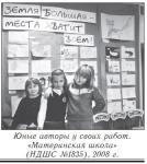 Будучи ограничены объёмом статьи, расскажем подробнее о самом первом нашем опыте, позволившем дать начало этой программе. Обстоятельства сложились так, что выставка в Государственном Дарвиновском музее дала импульс к необычному и весьма успешному проекту в начальной школе. Первая из выставок - «Он рисовал, как дышал...» Памяти художника-анималиста Владимира Смирина (ГДМ, Москва, 20072008; идея, концепция, сценарий А. Олексенко, художник Л. Литвинова, дизайнеры Д. Шмакова, С. Пешехонов, куратор Е.Харитонова). Вторая - «Земля большая, места хватит всем!» (НШДС № 1835, руководители проекта А. Олексенко, Е. Иванова).
