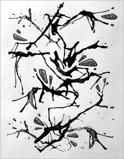 Здесь в работу активно включается детская фантазия: обводка черной и серебряной гелиевыми ручками контуров угаданных образов. Для оживления образа цветом используем гуашь - это самая кропотливая и длительная часть работы над рисунком. Затем добавляем мелкие точки разноцветными фломастерами - они уравновешивают композицию.