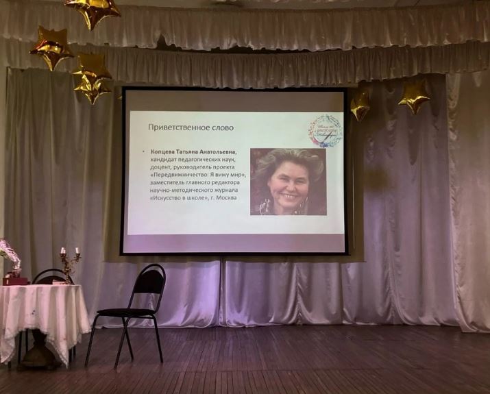 В работе конференции приняла участие руководитель проекта «Передвижничество: Я вижу мир», заместитель главного редактора научно-методического журнала «Искусство в школе» (г. Москва) Копцева Татьяна Анатольевна, также она обратилась с приветственным словом к участникам конференции.