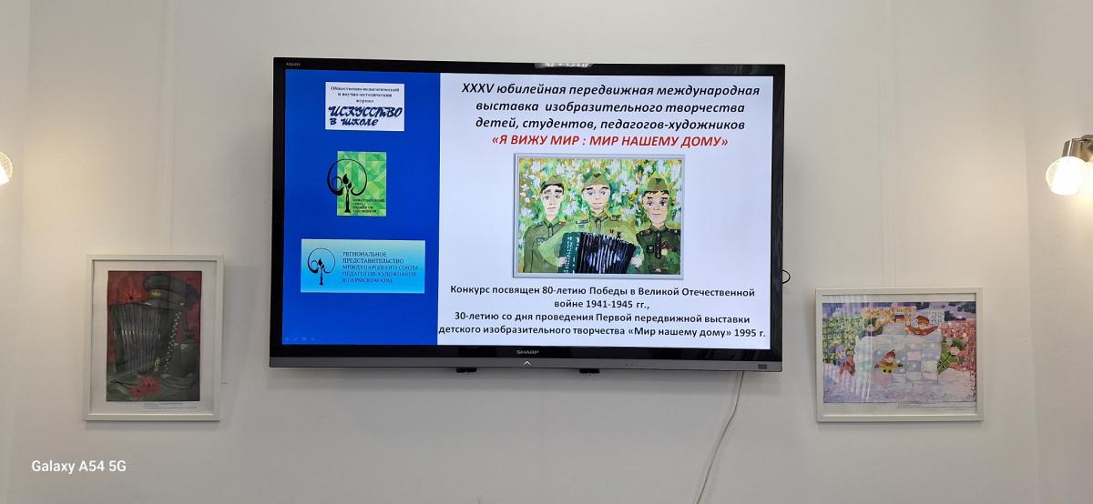 "Я вижу мир: Мир нашему дому", посвященная 80-летию Великой Победы и 85-летию начала Великой Отечественной войны...  Региональный куратор  выставки, Наталья Николаевна Фишер, отметила, что МАУ ДО "Станция детского, юношеского туризма и экологии" ежегодно принимает у себя передвижную выставку. и проводит её торжественное открытие, сопровождающееся экскурсией, культурно-просветительной программой, награждением победителей международного конкурса. Экспозиция выставки традиционно обогащается региональными рисунками детей. Поскольку произведения педагогов-художников и студентов не передвигаются по маршруту., то прекрасным дополнением к  "реальной" выставке в зале, стал  показ виртуальной презентации этой выставки. Экспозиция получила высокую оценку со тороны родителей, учителей и детей..Выступающие отметили её неоценимую воспитательную роль и высокие художественные достоинства!