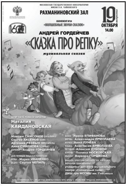 В октябре 2025 года в Рахманиновском зале Московской консерватории имени П.И. Чайковского состоялась необычная премьера - «Сказка про Репку» из абонемента «Волшебные звуки сказок».